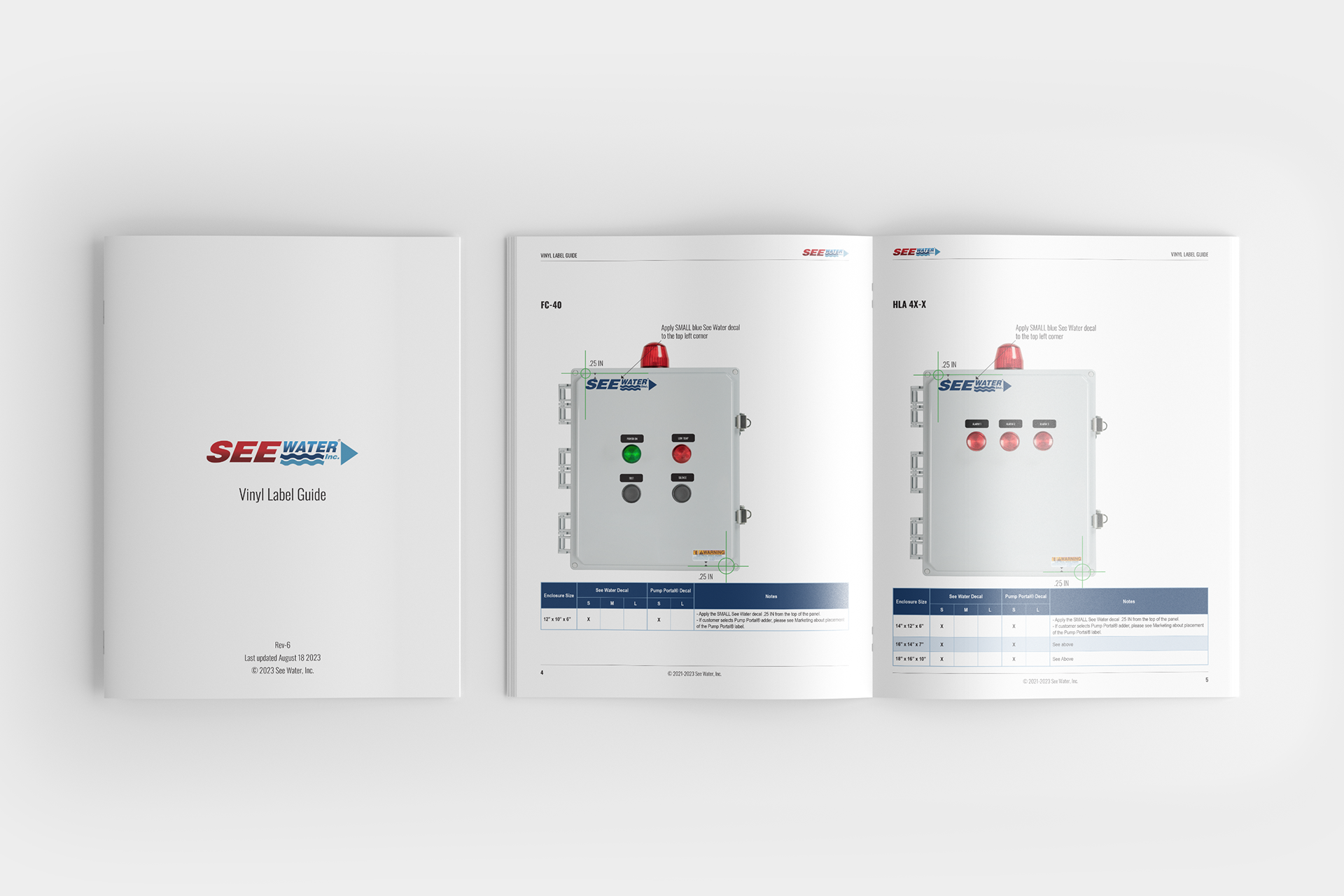 During my internship at Seewater Inc I worked on a 27 page document designed in indesign that show label placement on control panels