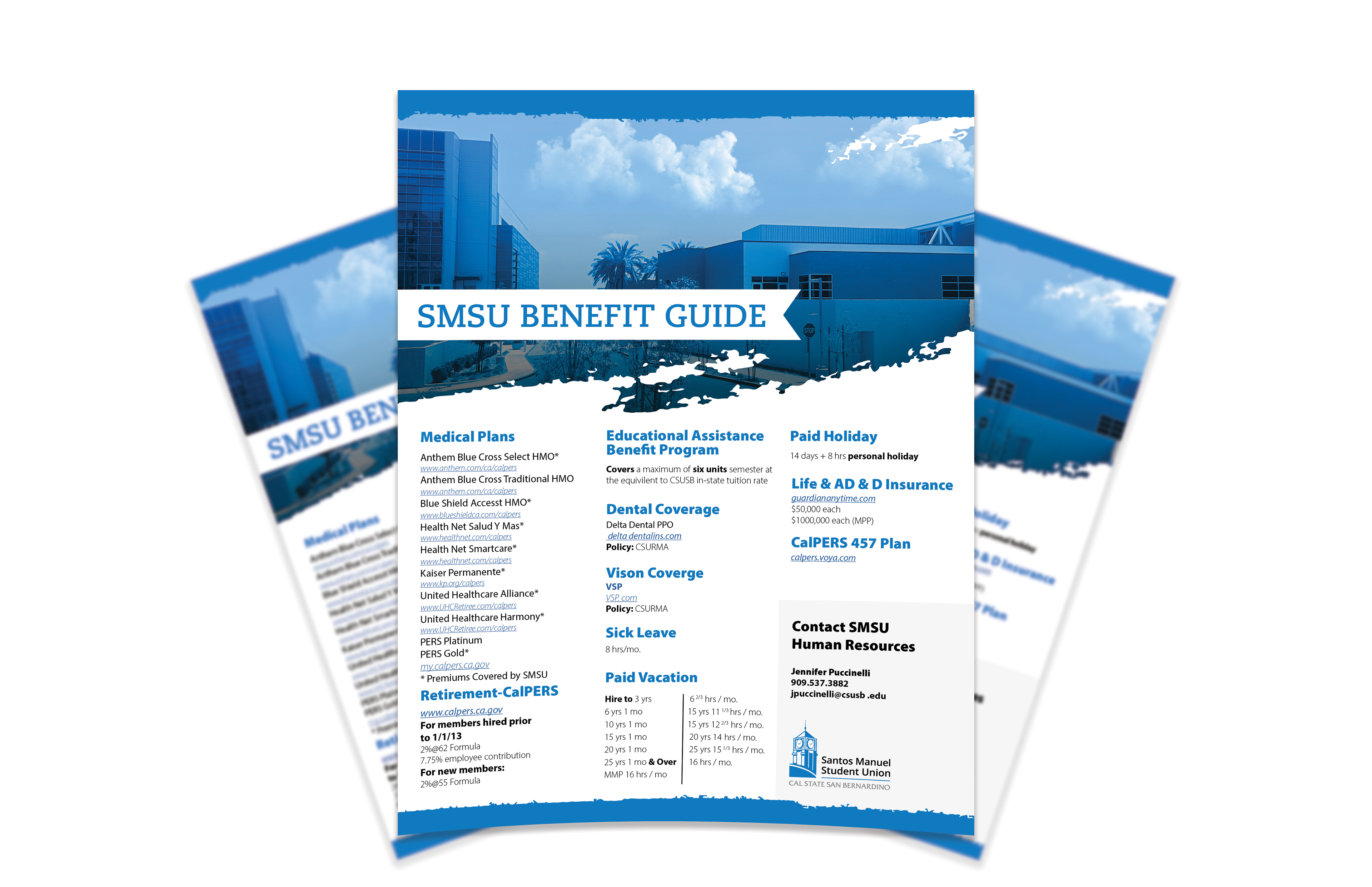 Benefit guide is a printed/digital flyer for CSUSBÂ employees informing about their benefits at CSUSB