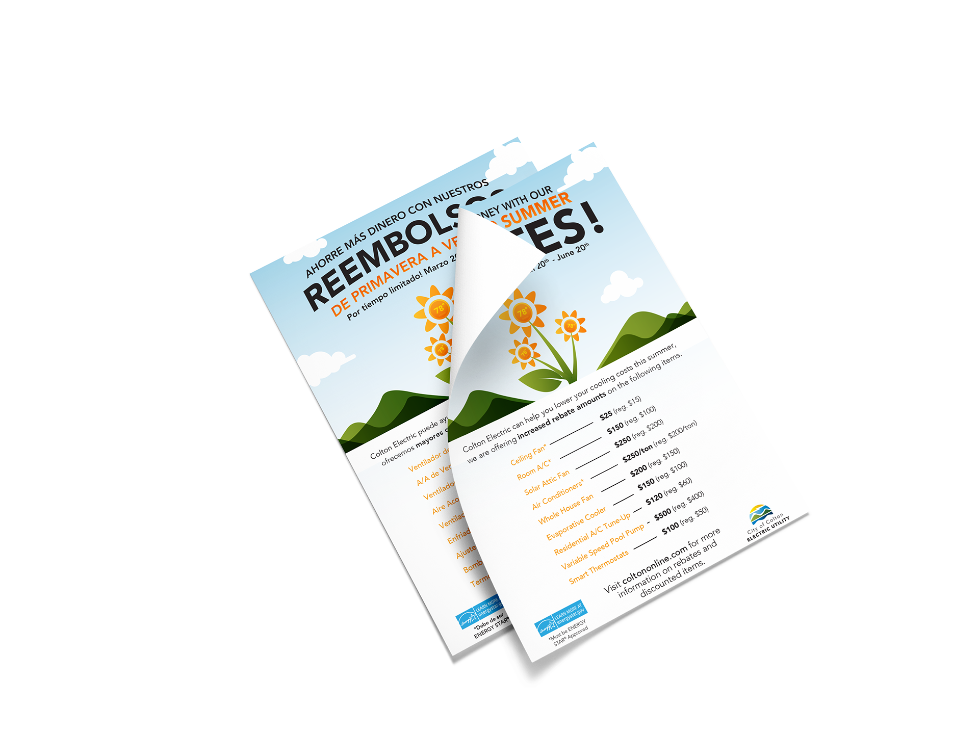 Working under Green Acres Creative I created a summer campaign for city of colton residents for rebates items.I developed the copy and graphics. Deliverables are flyer and social media posts.